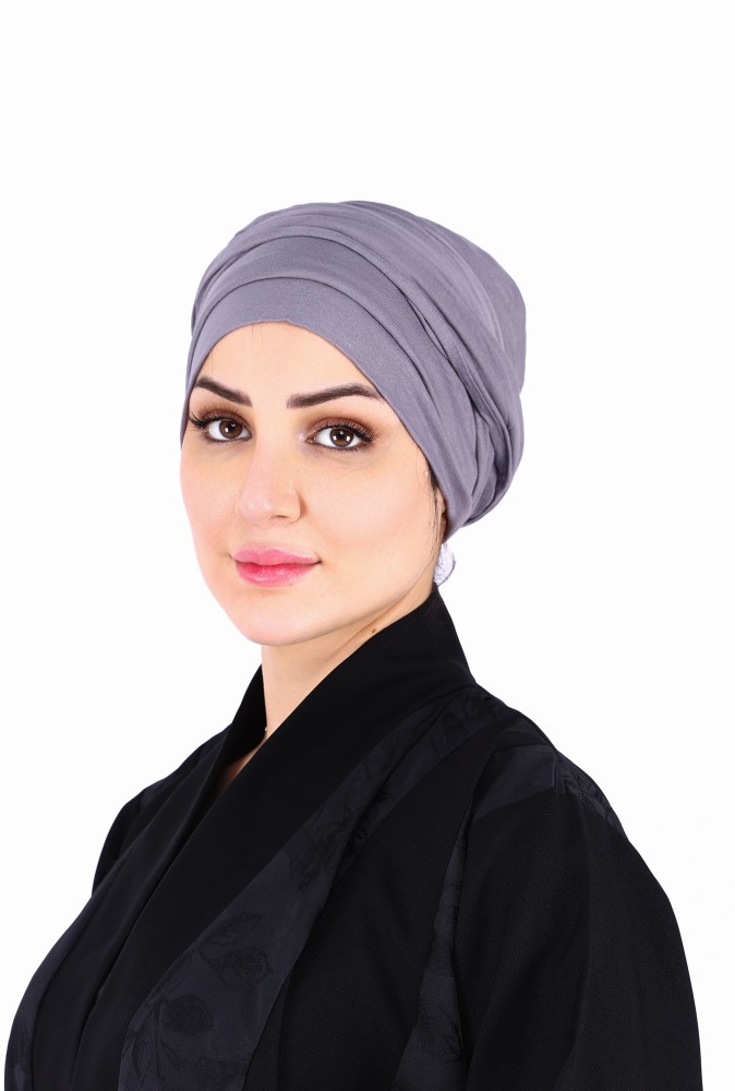 توربان آسيا مع سكارف متعدد الثنيات بلونه الرصاصي ليس مجرد قطعة تُلبس، بل هو انعكاس لأسلوب حياة يقدر الجمال والراحة.