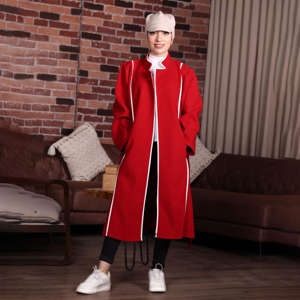 • يأتي المعطف باللون الأحمر والأسود الجذاب الذي يضفي حيوية على إطلالتكِ الشتوية.