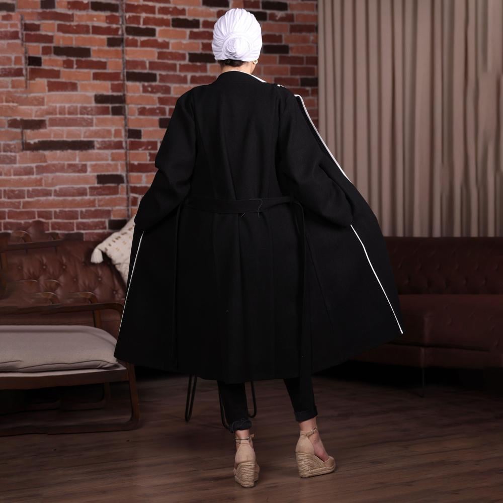 • التحديدات باللونين الأبيض تضيف لمسة أنيقة ومتوازنة، مما يجعل المعطف قطعة مميزة يمكن تنسيقها مع العديد من الألوان والأنماط.
