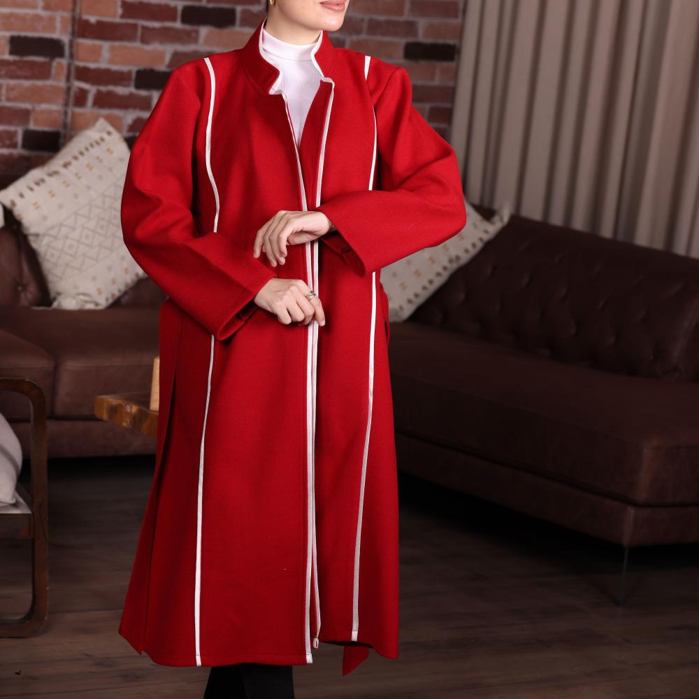 معطف شتوي نسائي جوخ بخطوط أبيض – لمسة من الأناقة الكلاسيكية