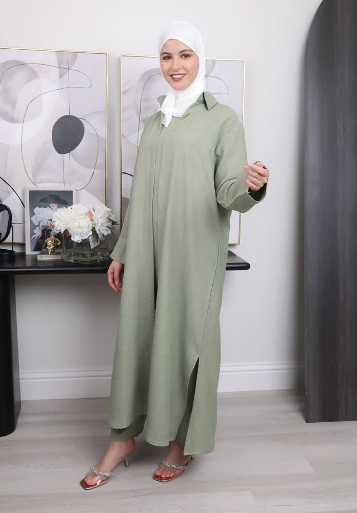 تمتعي بأناقة لا مثيل لها مع هذا الطقم الرائع المكون من ثلاث قطع أساسية تعكس أسلوبك الشخصي وتضيف لمسة أنثوية راقية إلى إطلالتك. يتميز هذا الطقم بجاكيت مفتوح الجوانب، بلوزة كات بتصميم عصري، وبنطلون واسع يوفر الراحة والأناقة في آن واحد.
