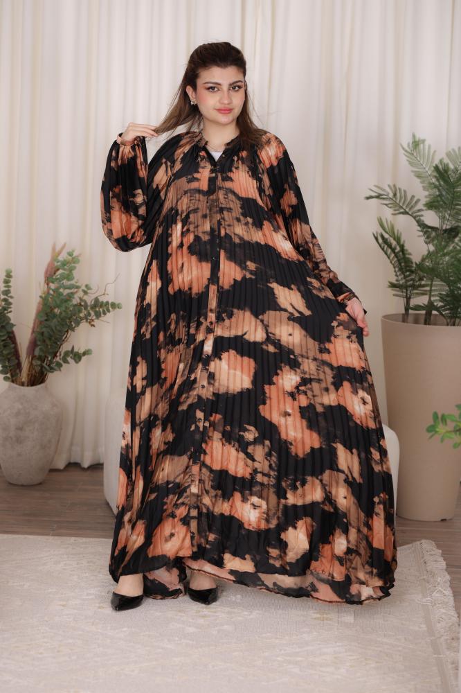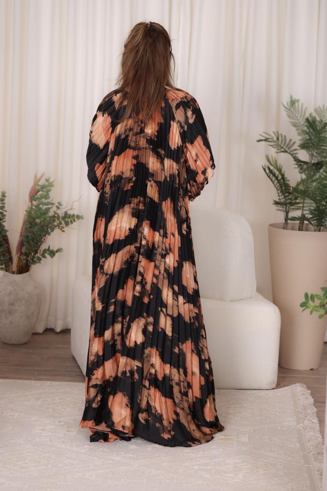 استعدي للتألق بإطلالة أنثوية جذابة مع فستان الكسرات المشجر من بلاك وينج، حيث يلتقي التصميم العصري بالنقشات الجريئة ليمنحك حضورًا مميزًا في كل مناسبة. يجمع الفستان بين اللون البرتقالي النابض بالحياة والأسود الأنيق في نقشات فريدة مستوحاة من الطبيعة، مما يضفي عليه لمسة من العصرية والرقي.