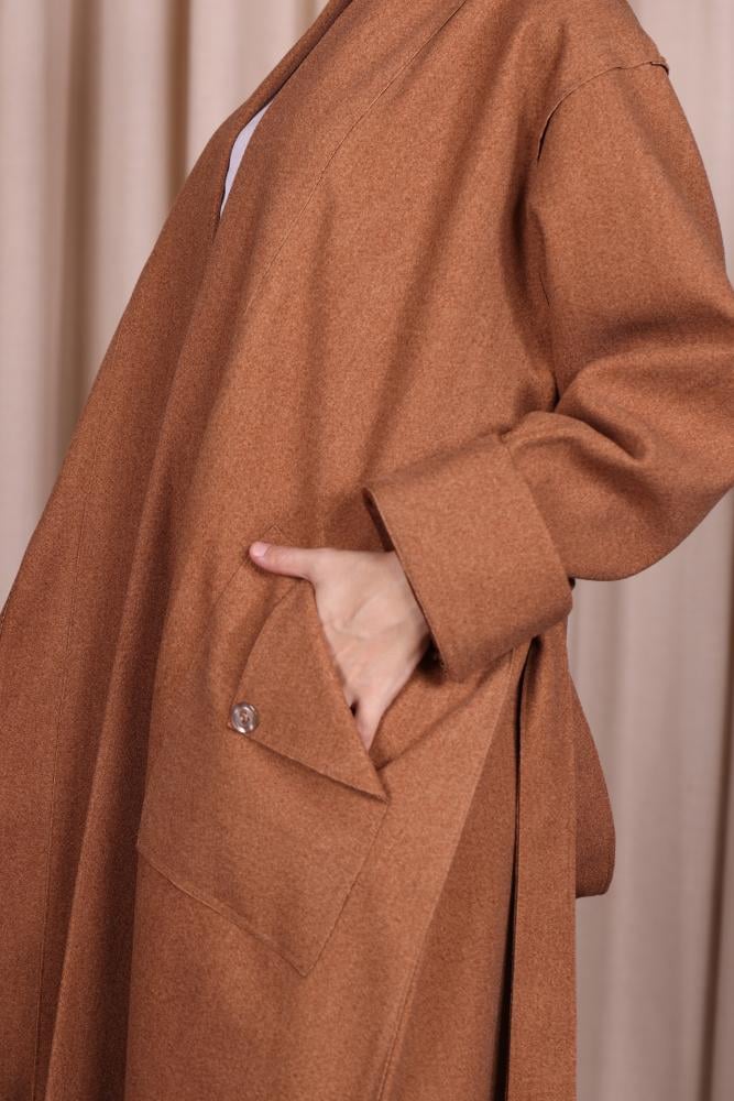 المعطف الشتوي بلون البيج الجملي هو الخيار الأمثل للمرأة العصرية التي تبحث عن إطلالة أنيقة ودافئة خلال فصل الشتاء.