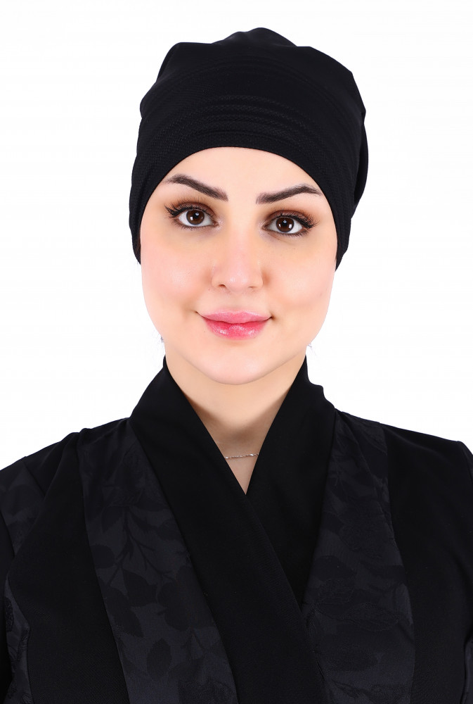 يقدم بلاك وينج توربان القطن الناعم المكون من قطعتين بلونه الأسود الأنيق وتصميمه العملي الذي يلبي احتياجات المرأة العصرية.