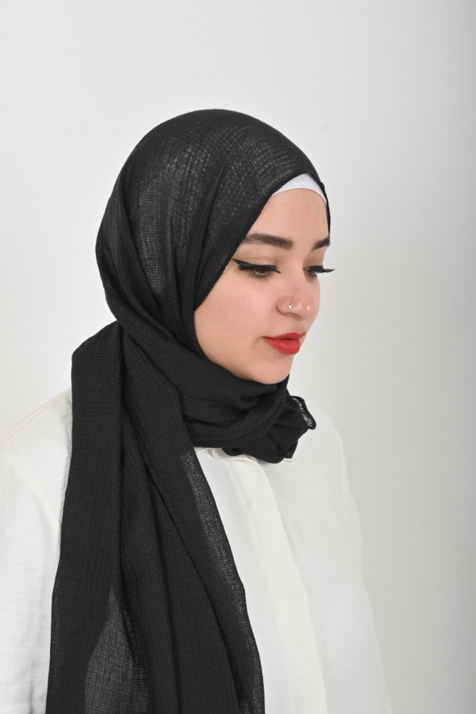 حجاب اللينين الراقي من بلاك وينج يعكس شخصيتك العملية والأنيقة في كل لحظة.